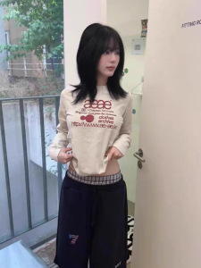 即墨现货~韩国东大门早秋aeae字母印花简约修身长袖T恤上衣打底衫