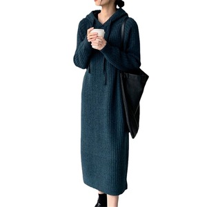 慵懒风连帽针织毛衣裙女秋冬新款韩版中长款过膝宽松加厚连衣裙子