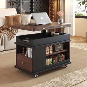 移动客厅小户型多功能折叠沙发实木边柜升降茶几小推车家用茶桌子