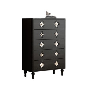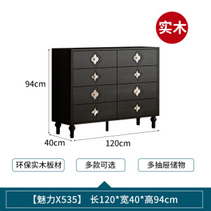 法式复古风斗柜黑色实木卧室置物柜床尾抽屉柜客厅靠墙储物五斗柜