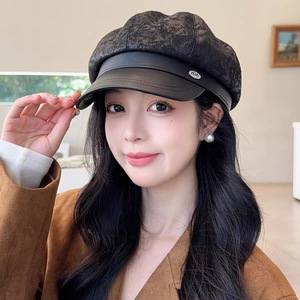 春秋季八角鸭舌帽子女新款英伦复古麂皮绒贝雷帽网红显脸小画家帽