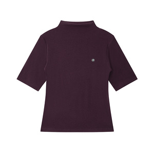 黑色中袖T恤女春秋季2025新款半高领收腰显瘦内搭五分袖打底上衣