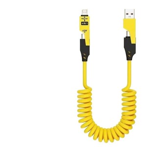 适用苹果华为小米四合一弹簧伸缩二拖二手机快充数据线车载充电线