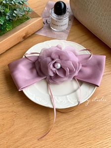 韩版新款森系网纱玫瑰花蝴蝶结飘带发夹缎面弹簧夹发饰女甜美头饰