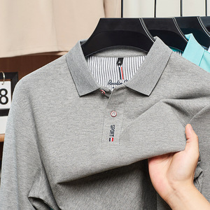 长袖男t恤纯棉秋冬新款简约高端刺绣宽松弹力高级感Polo衫男t恤