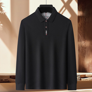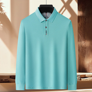 长袖t恤男翻领中年男士春秋新款休闲男装宽松字母刺绣打底体恤男