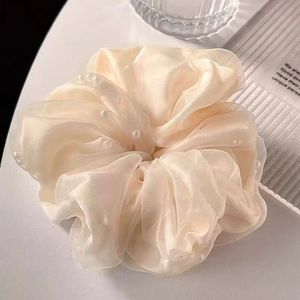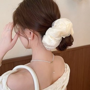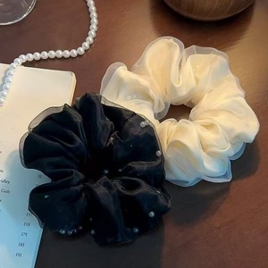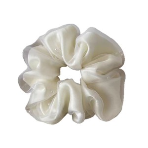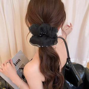 欧根纱材质韩系灌珠网纱大肠发圈温柔气质风女马尾头绳侧麻花发饰