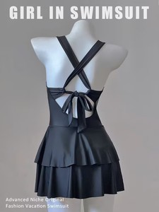 奶呼呼的马卡龙蓝少女泳衣女连体裙式纯欲风露背蝴蝶结可爱带胸垫