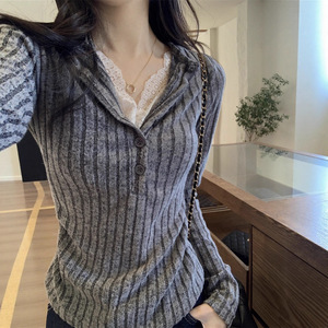 实拍 2025早秋新款蕾丝拼接内搭打底衫女感修身长袖t恤上衣86820