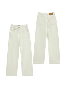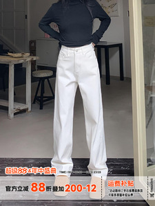 橘子树在哪儿四面弹白色直筒牛仔裤女春季高腰显瘦宽松窄版拖地裤