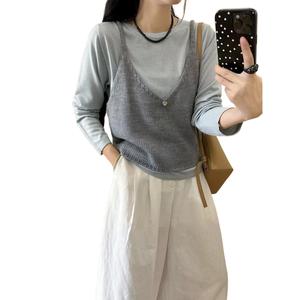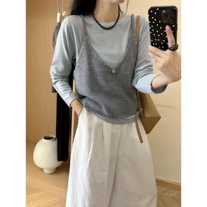 早秋韩剧女主穿搭套装女蓝色别致设计感叠穿针织衫吊带背心两件套