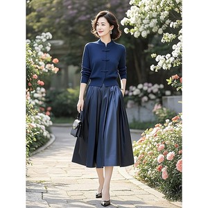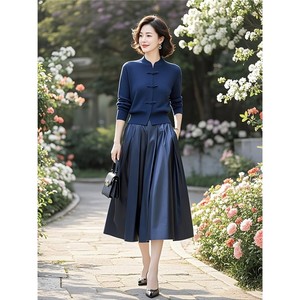 2025春季穿搭一整套高级感漂亮独特新中式国风蓝色针织两件套装裙