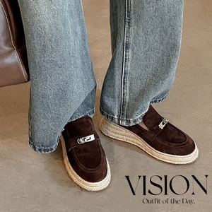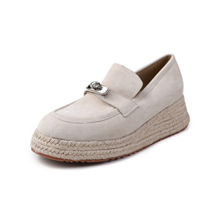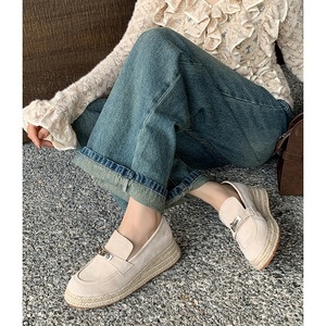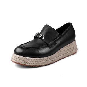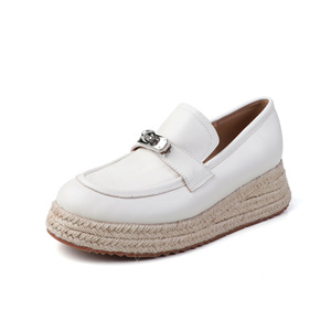 英伦风金属锁扣草编坡跟头层羊皮乐福鞋2025秋中跟圆头真皮单鞋女