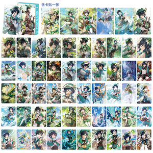 雷电将军镭射小卡56张/盒附带一张卡贴
