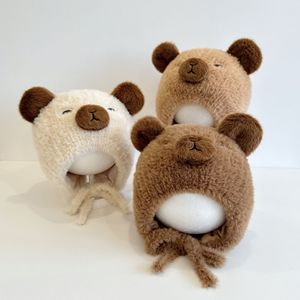 宝宝帽子冬季毛绒保暖护耳帽可爱小熊户外防寒防风婴儿包头保暖帽