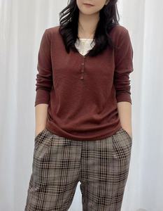 假两件打底衫女 2025秋新款韩版宽松休闲竹节羊绒长袖上衣 1237