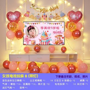 小公主电视投屏生日派对背景墙女孩宝宝儿童周岁气球装饰场景布置