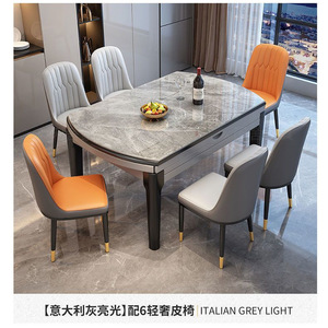 轻奢岩板餐桌餐椅组合小户型简约家用实木吃饭桌子方圆可伸缩折叠