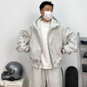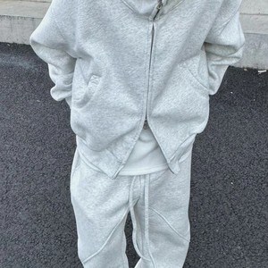 简约美式重磅连帽卫衣开衫男潮流阔版系带休闲裤宽松两件休闲套装