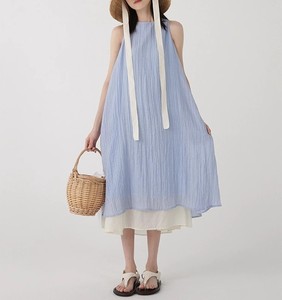 温柔气质小清新天蓝色无袖背心吊带连衣裙女夏季新款宽松显瘦长裙