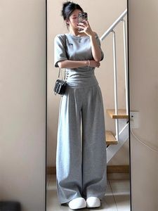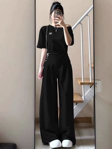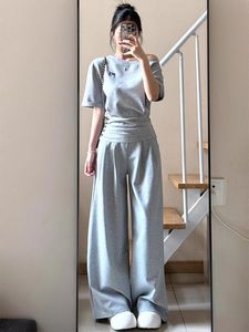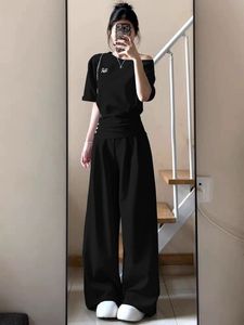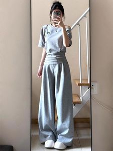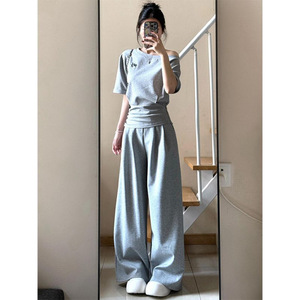 运动套装女夏季韩版宽松显瘦时尚盐系百搭短袖长裤休闲两件套#913