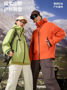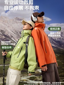 骑行女单层男登山服国标一级户外硬壳冲锋衣男女单层防水防风外套