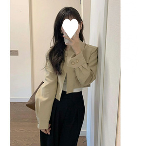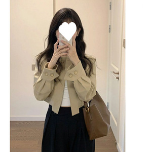 常规卡其色POLO领短款风衣外套女春秋设计感小众夹克开衫长袖上衣