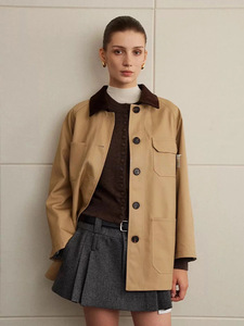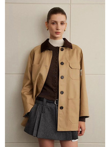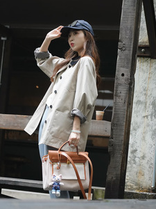文九 巴恩风高密斜纹棉中长款外套女猎装撞色风衣25早秋新款8592
