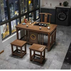 新中式阳台茶桌椅组合实木泡茶桌小户型茶桌一体一整套禅意喝茶桌