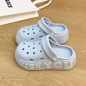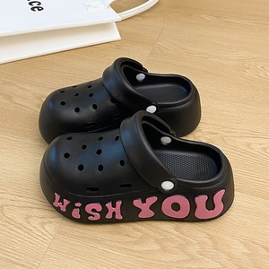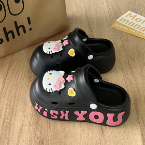 7CM厚底增高洞洞鞋女夏季外穿新款卡通小个子海边沙滩包头凉拖鞋