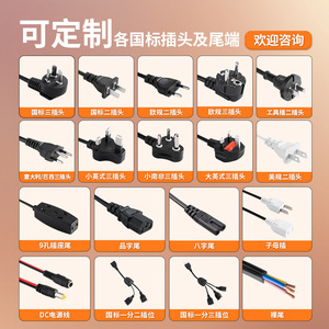 欧规二插电源线带插头线2芯2插裸尾电源线欧式欧标接线纯铜单头线