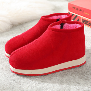 冬季加绒加厚手工棉鞋女防滑保暖老年人室内家居老式毛棉拖鞋男士