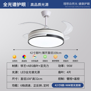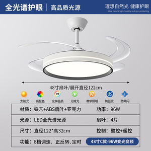 现代简约隐形风扇灯简约变频吸顶吊扇灯家用客厅餐厅隐形扇灯具