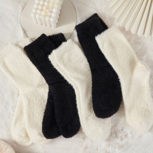 厂家直销水貂绒袜子女中筒秋冬季加绒加厚毛茸茸黑白色睡眠毛毛袜