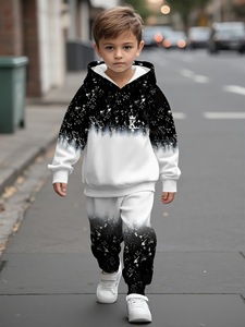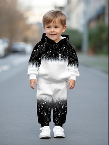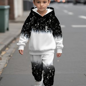 宝宝男童女童连帽卫衣套装,时尚潮流渐变星空图案印花设计,春秋