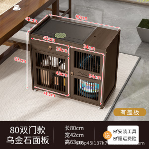 胡桃色-【80款】移动茶台-黑色不锈钢电器