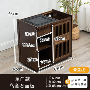胡桃色-【63款】移动茶台-仿石-黑色电器-美人壶茶具