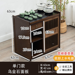 胡桃色-【63款】移动茶台-黑色电器+吉祥壶茶具
