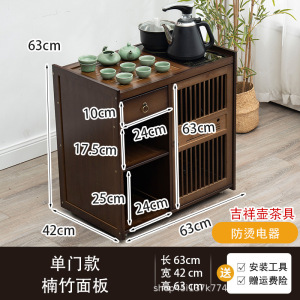 胡桃色-【63款】移动茶台-玻璃消毒电器+吉祥壶茶具