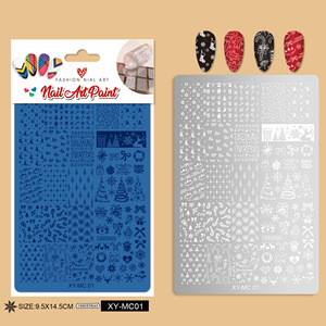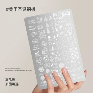 新款圣诞节美甲印花钢板 雪花铃铛麋鹿美甲转印钢板格纹印花模板