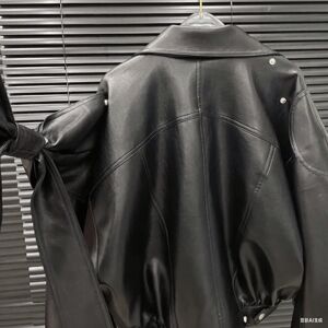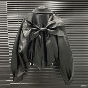 2025新款设计女装大蝴蝶结皮衣外套女小众设计感宽松PU皮夹克上衣