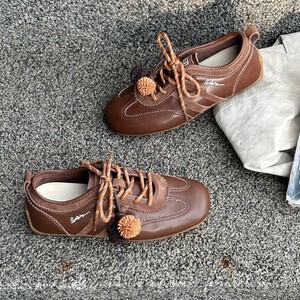 SML真皮复古德训鞋女2025新款百搭显瘦舒适软底系带休闲阿甘鞋女