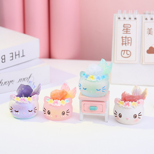 网红同款人鱼猫猫水晶小豆丁盲盒卡通可爱女生摆件桌面装饰礼物
