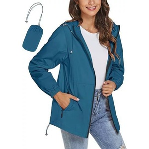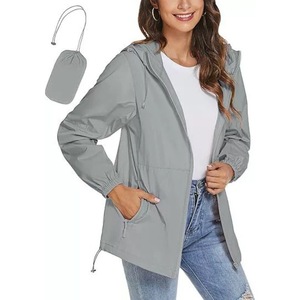 跨境热销亚马逊外贸欧美风女式防雨水轻便便携连帽风衣雨衣冲锋衣