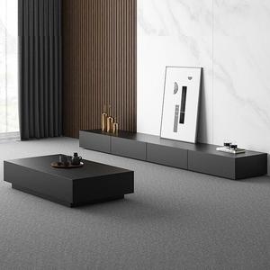 意式轻奢极简岩板电视柜黑色现代简约小户型客厅茶几电视柜子组合