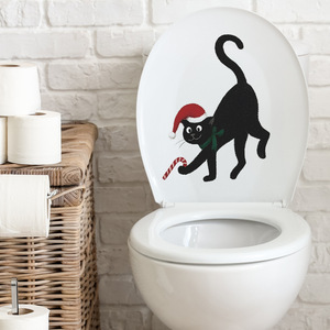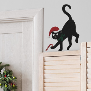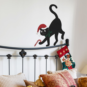 fun-f845个性戴圣诞帽的黑猫家居节日装饰美化墙贴纸外贸批发自粘