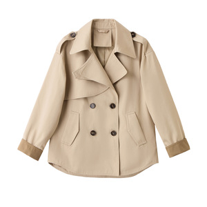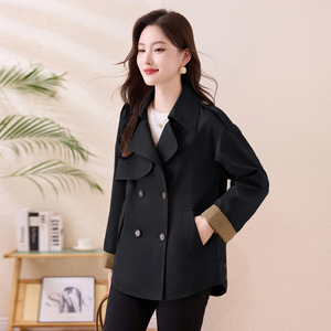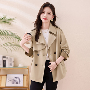 高端休闲短款风衣外套女2025秋新款双排扣小个子高级感卡其色大衣
