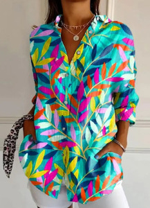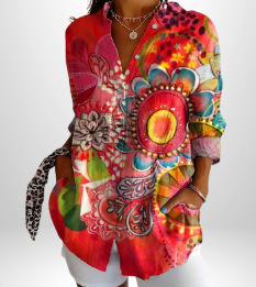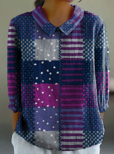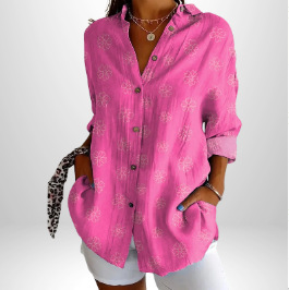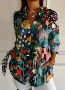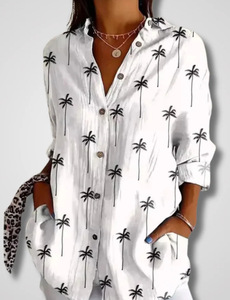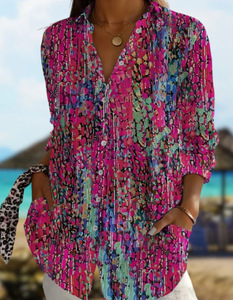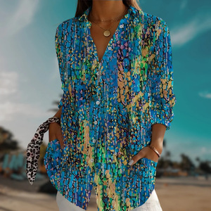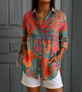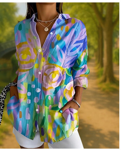 独立站大码女装新款长袖纽扣衬衫 纯色碎花女士纽扣衬衫休闲舒适