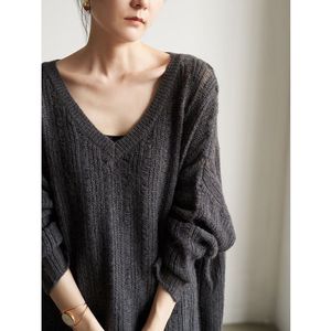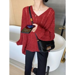 韩版春秋新款慵懒风针织毛衣女宽松外穿露肩鸡心领休闲显瘦针织衫