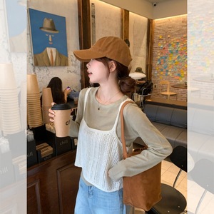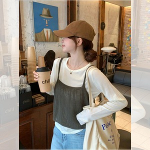 韩系chic白色长袖内搭叠穿针织吊带两件套女早秋季氛围感穿搭上衣